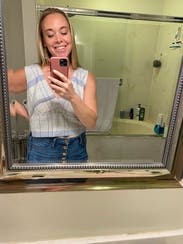such a good top. wear it with the skirt for a more formal look, or wear it with white jeans or high waisted denim for a casual look. it's adorable. I would love to own it.