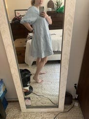 Super flattering even at 32 weeks pregnant. Very flowy but still gives shape and not too short even at 5’9