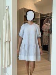 This dress was not it for me. The dress is meant to be oversized but there is absolutely no shape to this dress and it dwarfs the body. Could potentially work if you sized down the pictures for this dress are a little misleading as they don't show the middle. Wouldn't recommend.