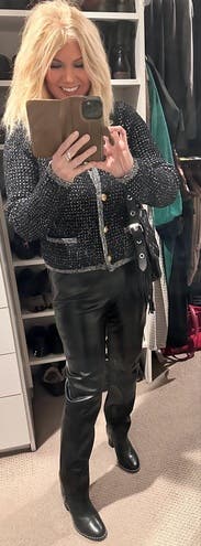 Traditional vibe. Warm tweed jacket. Wore it with pleather pants, white t-shirt and boots to give it an edge. Arrived new with tags. Easy to style a number of ways.