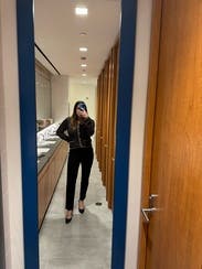 This was such a cute sweater! Wore it with a skirt and a pair of pants. The gold buttons are such a cute accent. It’s stretchy so I was able to button it with my bigger chest. Buttons fit into the button holes weirdly, so beware of that! Would definitely rent again. A good work to going out top