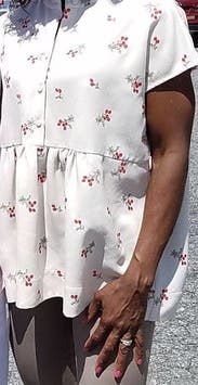 This top was fun as it literally the cherry on top. Product was a great length and fit really loose. It looks like there was a loop for a belt but no belt came with the shirt.