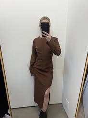 This dress is an absolute must-have! The fabric and silhouette are beautiful, creating a super flattering and chic look. It's also great for a range of heights. Just a heads-up: it runs a bit small in the ribcage, so I recommend sizing up for the perfect fit. If you have wider hips enter through the bottom and if you have wider shoulders enter through the top. Overall, amazing rental that can be worn for various occasions.