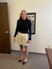 If you prefer a sleeker look, these may not be your first choice. The shorts are great, with a pretty light gray color and nice linen fabric that does wrinkle. They hit me mid thigh. They kind of balloon out due to pleats and cut. I'm curvy so these shorts honestly add some volume to my backside. All good but be forewarned in case that look isn't for you. I found the waist on these which is quite high to be on the small side. Finally, these look amazing with the matching jacket. Work ready.