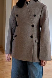 The CO Sculptural Collarless Jacket is a sharp and refined piece with a double-breasted, collarless silhouette. For a timeless look, wear it with trousers or a skirt for an office-to-dinner outfit.