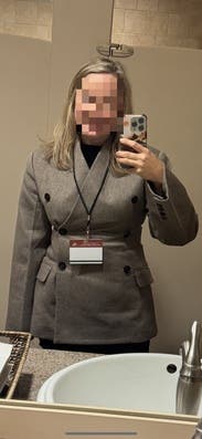 Loved this jacket. The no collar and big sleeves were so flattering. Warm! Perfect for fall
