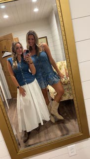 I am so sad that I sent this skirt back already. Such a cool update to the white skirt. The crinkle material really makes it feel so elevated. Wore it out to dinner with heels but could also be dressed down.