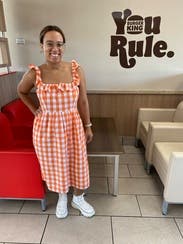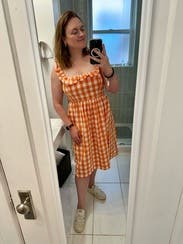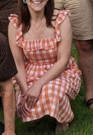 Very well done picnic dress, perfect shade of orange and adorable neckline. I loved this