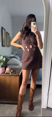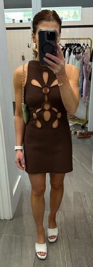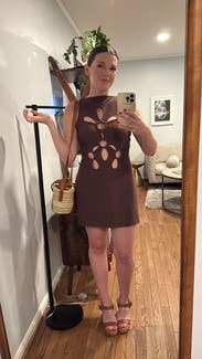 Obsessed with this dress- I got so many compliments!! The shape is super flattering and the cut-outs are so cute. Highly recommend for a night out, day party, game day (if your team has brown), as well as vacation. Such an awesome rental!