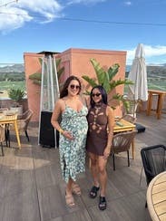 I ultimately went with wearing the small over XS for a bit more wiggle room while I was out of town. Once I put the small on, I wish I had actually packed the XS. It still looked great but when I sat down the fabric in the chest and belly was a bit loose. It is pretty short but I didn’t mind. Many compliments!