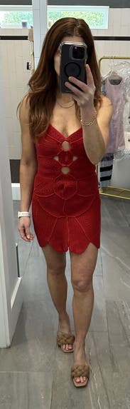 Loved this dress. I could’ve sized down by one size because it does grow as you wear it given the crochet material but i received soo many compliments and the red is so vibrant.
