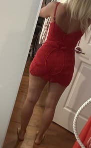 I wore this to an after party. After taking off my formal gown. It’s a hot little number. There is a little weird Poochie part with the fabric in front just by the way it’s knitted. My boyfriend wanted me to keep it. He thought it was so hot. But I didn’t wanna pay $600 to keep it.