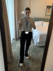 I went on a work trip and this was the perfect top! It was comfy while still looking professional. The one downside (for work) was that when I lifted my arms, the shirt rose up quite a bit.