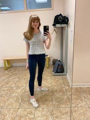 The top is so good! It’s true and size and just slightly cropped. It worked very well with high waist jeans. I loved that it was a little boxy - it was prefect with the cropped look. My only complaint is that there was very little stretch which made it difficult to get off without help.