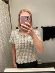 Cute cropped tweed top, good with high waisted pencil skirt or pants