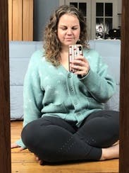 Rented this for working from home and ended up wearing it several times because it was so comfortable and cute. Although meant to be oversized, it does run quite large - I swam in the 0, and you can see in the photo how long the sleeves are on me. Still loved it though - perfect lounging sweater!