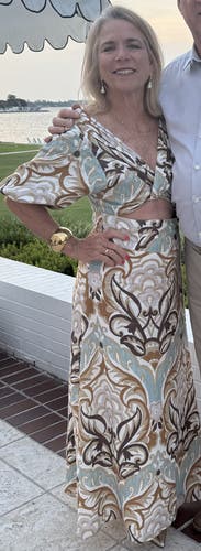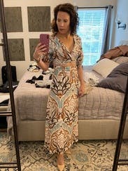 Wore this to a spring wedding. The colors are so beautiful and the fit was perfect. Very comfortable and flattering. I think the dress they sent me was brand new with tags, so pretty!!
