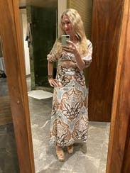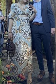 This dress was extremely flattering and hit in all the right places. I got so many compliments on how unique and fun it was for LDW. The fabric is linen, which I found to be pretty breathable for a cooler summer evening, and it wrinkled only a little when I sat down. All in all, this is a fabulous dress for a vacation or date night, and I would definitely consider renting again!
