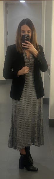 Chic and comfortable dress! The style is flattering and easy to wear, with just the right balance of elegance and comfort. The fit was slightly big in the chest, but it still looked polished and put together.