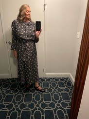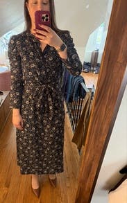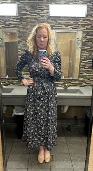 Loved this dress! Perfect for work and a flattering cut on me. I am 5’11 and it was mid-calf on me…probably not for shorter ladies.
