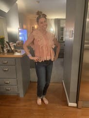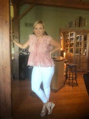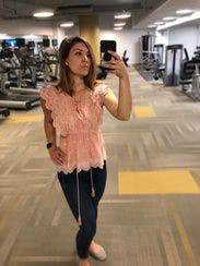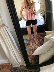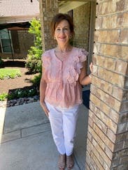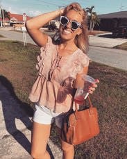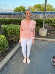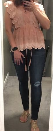 Loved the ruffle details. Easy to wear. Loved it paired with white jeans and neutral color wedges. Looks better on than I thought it would. Seemed a little worn ( the one I received in the mail).