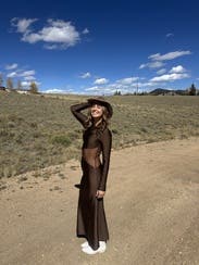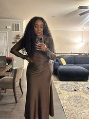I wore this to a black tie wedding and it was absolutely stunning! The material is luxurious and the color is a gorgeous chocolate brown. I received SO many compliments throughout the night. Perfect for an elegant fall wedding! The small size fit me perfectly.