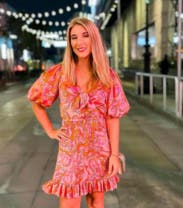 Best dress ever! Completely obsessed! Perfect all the way around! Sized down per reviews and it was perfect!! Loved the color, the fit, the print!! A little bit short, but I’m a tall girl. Wish I could wear this every day!