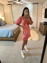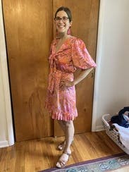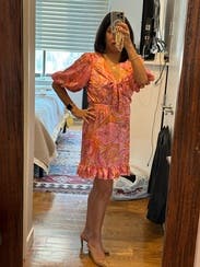 The perfect dress for my sister’s wedding shower! It is very comfortable and flattering. I got so many compliments! It was a great length as well, I am 5’8”. I couldn’t get the ties to lay like in the picture but it didn’t bother me.