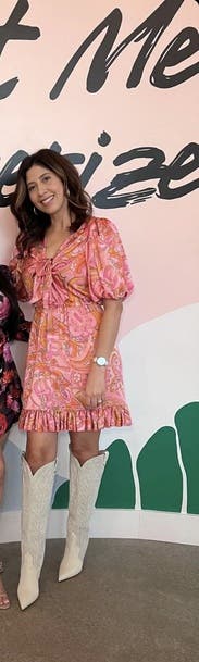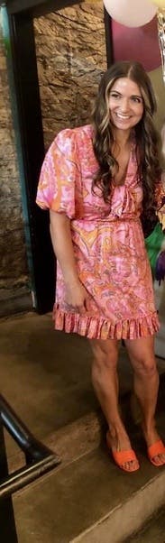 This dress is so fun! It was a little big but I have bigger boobs and this dress was low cut but so flattering without feeling like the girls were out!