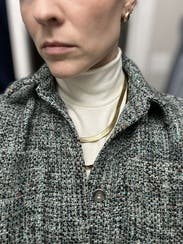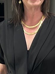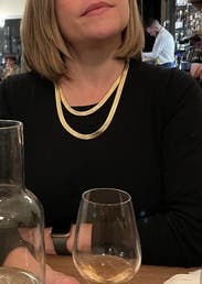 This necklace was a fun item to mix into outfits and accessorize! Definitely thicker and chunkier than my usual jewelry, so it was cool to try out - can be a bit much for some outfits. Slightly deeper yellow gold than my wedding band. The clasp is easy to use and pretty secure. Would rent again.