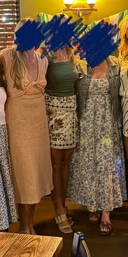 Wore to a rehearsal dinner. This dress was a little out of my comfort zone with the cut and knit fabric but I ended up loving it.
