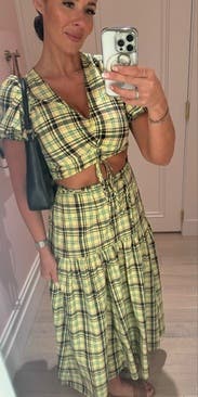 A bit much for me as a set. The top is a little tight in the chest and I didn’t love the fit. Wore the skirt more.