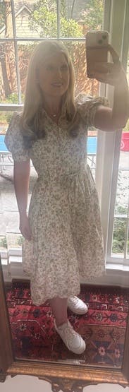 Immediately I thought it was so well made and there was so many details. Fit was perfect. Felt like I can wear it on a day I’m going out to to eat or walk in a slightly dressier manner, during the day. Felt like a park dress. Loved the colors too. I felt good wearing it.