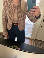 I wanted to buy this jacket, I loved that it's tailored and I paired it with the Hugo Boss dress. It's perfect for fall and is a versatile piece, highly recommend!