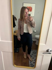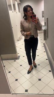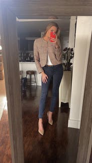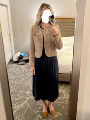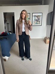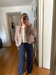 I rented this blazer for work because I loved the color, but it wasn't my favorite rental. Despite being lined like a blazer, the thick, heavy fabric made it feel more like a sweater. It was too warm for me even in early spring, and I'm someone who's usually cold. Fun enough, I saw someone wearing it on a TV interview while I had it, so it might be perfect for a different person or climate.