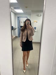 Great blazer to spice up work outfit! More reddish than pink in person but still loved it! Got lots of compliments.