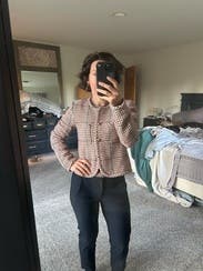 This is my second time renting this piece. Once again, very impressed with the quality of materials and craftsmanship. Sleeves are still a touch too long, but didn’t bother me as I spent most of the day at my desk. Nice thick wool to keep you warm in fall/winter!