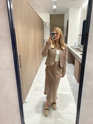 Love how versatile it is — pairs easily with sneakers for a casual vibe or heels for a more polished look. The fabric feels great and holds up well throughout the day. Definitely a piece I’ll reach for often.