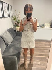 Loved this dress! Will rent again. Great for looking cute even in warm weather. Could be dressed up for the office.