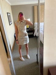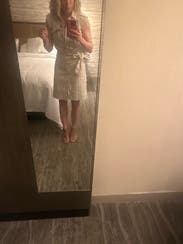 Wore this dress for a family photo session with a photographer at the beach. Our aim was neutral colors and casual. Wore a 6 rather than my normal 8 Very comfortable. Would rent it again.