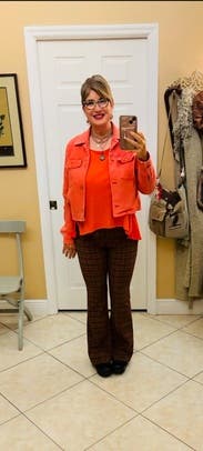 Pants fit perfect, super cute and loved higher waist and length. Added this awesome Veronica Beard jacket to change it up and some fun style!