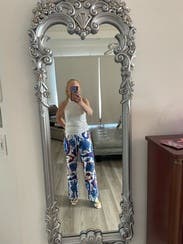A little too long so I had to break out my highest heels but I loved these! I’m all about loud fun pants this summer. If you are in between sizes, I’d say size up bc the fabric doesn’t really have any give