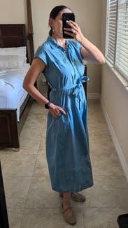 This was easy to wear, nice cinch in the waist with the belt and I’m always happy about pockets! Fit well, TTS.