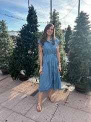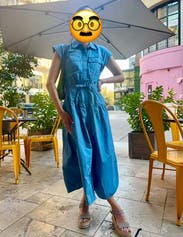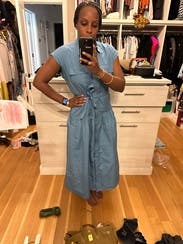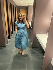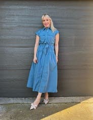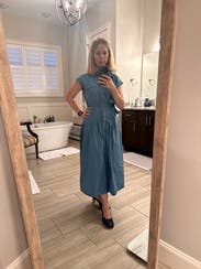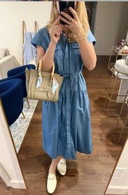 I LOVED this dress. I originally rented the striped version back in the spring and was devastated to return it. I liked this one even more; it can be dressed up or down and is so comfortable and practical with deep pockets. I got lots of compliments and ultimately ended up buying it.