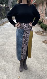 The mixed patterns are so fun and easy to style. The attention to detail is amazing on this skirt. Notice how the hems change throughout the skirt. Gorgeous.