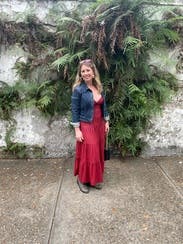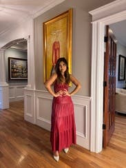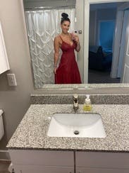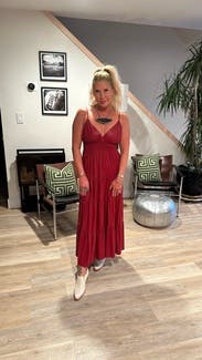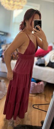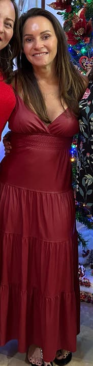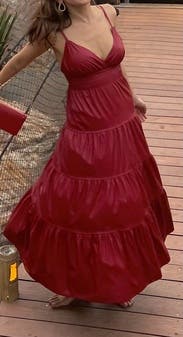 Beautiful dress I wore on our Miami trip on Christmas Day! Fits perfectly, the faux leather is so soft and looked high end. I really liked the deep red color! Keep in mind that you might need to wear it without a bra or with a small cup one as the chest area is a little small. Beautiful dress overall! I would rent it again!