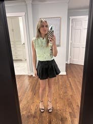 This is not a piece that would have ever caught my eye normally but I am SO glad I gave it try. It turned out to be a chic and fun piece with a lot of versatility. I wore it on video calls for work and on a date. It was perfect for LA’s warm days but cool nights. I loved the crop too, such a modern cut. I sized down and it was slightly snug in the bust. I might try a 4 if I rent again.