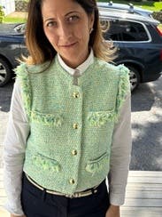 The color!!! I word it over a silk dress to elevate a vacation look. Chanel vibes. Love the structure and detail. Would be great to work with cream wide leg pants or with baggy jeans for a night out.