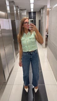 Loved this top. Wish I would have worn it more while I had it. Received lots of compliments, and great fit. Not too cropped but not too long. It went very well with high-waisted jeans.