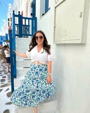 I wore the skirt for a summer date night and LOVED it. I received so many compliments that night. The skirt has a lot of material which makes it a little dressier. I'm pretty short and it wasn't too long for me. The back has elastic so the sizing felt just right. Comes with a little belt that I used one of the times I wore it but it also looks good without the belt. Overall, I love this skirt and hope to rent it again!